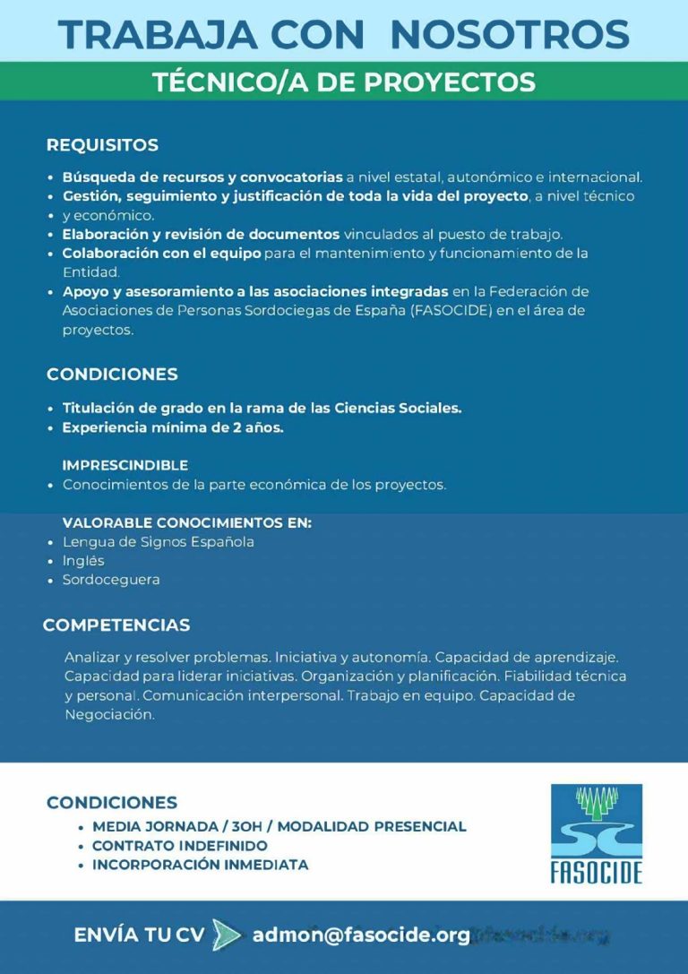 Si quieres enviarnos tu cv, puedes hacerlo a info@fasocide.org